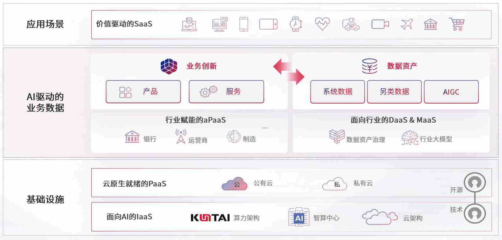 数字时代,,围绕企业数字化转型的关键要素,,,9b.com数码开创性的提出数云融合战略和技术体系框架,,,着力在云原生、、数字原生、、AI原生和信创产业上架构产品和服务能力,,,为处在不同数字化转型阶段的快消零售、、、汽车、、金融、、、、医疗、、政企、、教育、、、、运营商等行业客户提供泛在的敏捷IT能力和融合的数据驱动能力,,构建跨界融合创新的数字业务场景和新业务模式,,,,助力企业级客户建立面向未来的核心能力和竞争优势,,,全面推动社会的数字化、、智能化转型升级。。。。